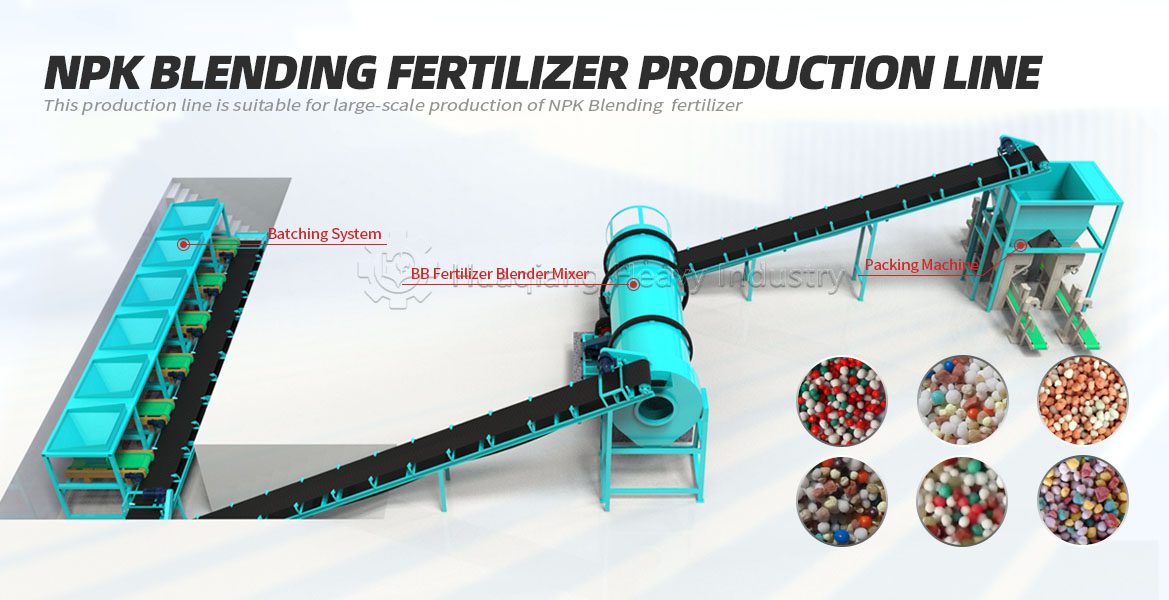 The BB fertilizer production line is a specialized production line for producing mixed fertilizers. Through physical mixing, different types of elemental fertilizers (such as urea, diammonium phosphate, potassium sulfate, etc.) are mixed in specific proportions to form a nutritionally comprehensive and proportion adjustable compound fertilizer. This production method has high flexibility and can quickly respond to market demand for different formula fertilizers, while avoiding the complex process and high energy consumption of chemical synthesis fertilizers.