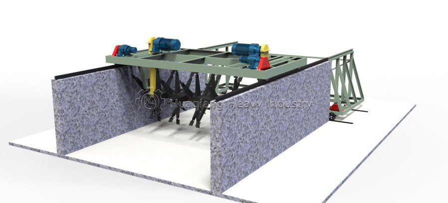 The trough-type compost turning machine can alternate between multiple fermentation tanks to achieve continuous fermentation of raw materials. When the material in a fermentation tank is fermented, new raw materials can be added to the fermentation tank, and the compost turning machine will be transferred to another fermentation tank to operate, making the entire fertilizer production line achieve continuous production and improving production efficiency.